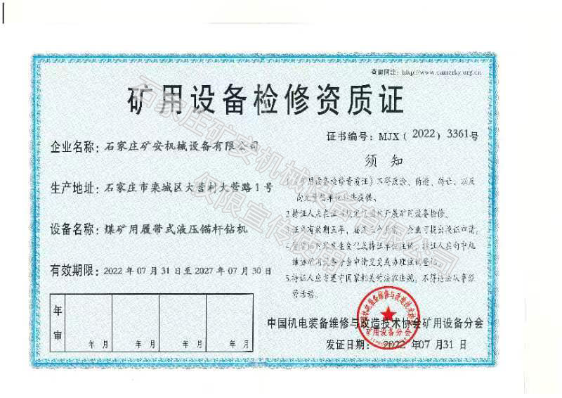 石家莊礦安機械設(shè)備有限公司成立于2011年3月,公司位于風景優(yōu)美、科技發(fā)達、交通便利的石家莊市欒城區(qū),是一家專注生產(chǎn)煤礦井下支護機具(錨桿鉆機)和安全鉆機(防突,架柱等)及氣動隔膜泵等礦用機械設(shè)備的********,是國內(nèi)煤礦機械裝備的生產(chǎn)商和服務(wù)商,根據(jù)用戶需求提供井下適用的鉆機施工解決方案。公司致力于打造研發(fā)、制造、銷售、服務(wù)為一體的現(xiàn)代化企業(yè),全心全意為煤礦生產(chǎn)保駕護航。 ? 公司建有裝配車間、機加車間和調(diào)試車間,擁有嚴格的質(zhì)量控制體系、先進的產(chǎn)品開發(fā)系統(tǒng)、完善的試驗檢測設(shè)施、良好的售后服務(wù)保障。先后與中煤科工集團沈陽研究院、西安研究院、太原理工大學、燕山大學等知名院校建立了緊密的合作關(guān)系。 ? 公司產(chǎn)品主要銷往山西、陜西、山東、內(nèi)蒙古、黑龍江、云南、貴州等七十多個礦區(qū)和地方煤礦,擁有一支成熟的售后技術(shù)團隊,并且和中煤集團、華電煤業(yè)集團、華潤煤業(yè)集團、潞安集團、山西焦煤、淮北礦業(yè)等國內(nèi)知名企業(yè)達成長期合作關(guān)系。 ? 公司始終秉持“讓煤礦生產(chǎn)更安全”的發(fā)展使命,力求誠信與創(chuàng)新,追求卓越與完美,深知“實實在在、心無旁騖做實業(yè)”,這才是本分!石家莊礦安機械設(shè)備有限公司愿與您攜手共進,共同發(fā)展!為客戶創(chuàng)造價值,提供優(yōu)質(zhì)的產(chǎn)品和*佳的服務(wù)是我們永無止境的理念!